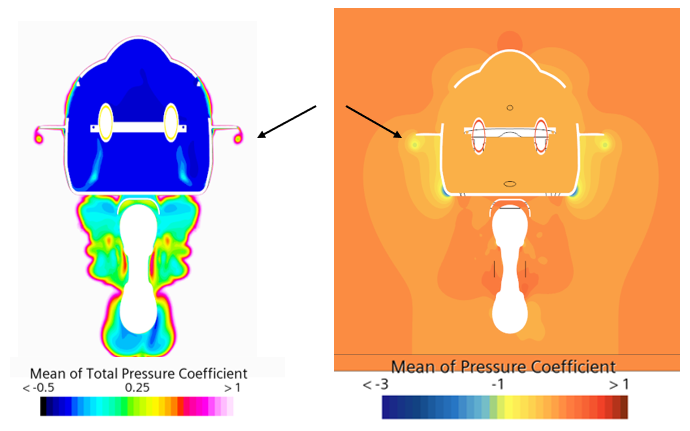 この2つはCFDを見る上での基本的な1つの変数である. Cpは圧力係数, CpTは全圧力係数でそれぞれ速度による影響を除くために無次元化された圧力と)全圧になる. 渦をダウンフォースとして用いたい場合, その渦が実際に低圧領域を発生させているかを確認するためにCpを用いて, 渦の形成がどれほどきれいにできているかを確認する方法としてCpTを使うと良い. 気流制御を目的とする場合は, CpTに注目し, 後流が目的通りに外側に押されているか, 綺麗なCpTの領域が増加しているかを確認するといい.